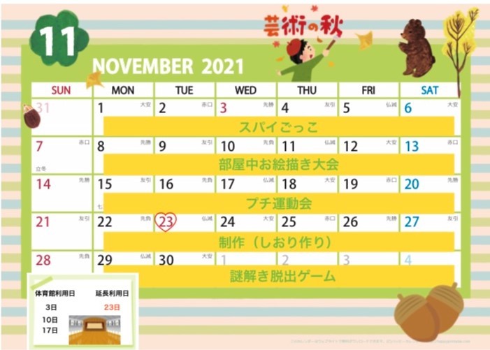 ケアステきっず令和3年11月活動内容(予定)