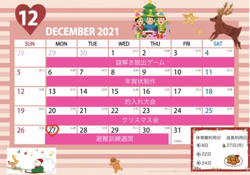 ケアステきっず令和3年12月活動内容(予定)